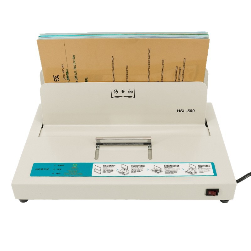 Product information: Name: Hot melt binding machine Binding capacity: 500 sheets (70g) Binding size: A4 specification Machine length, width and height: 380*240 * 183MM Current: 1A